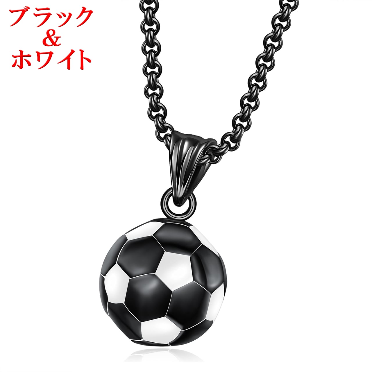 ユニセックスネックレス メンズ レディース サッカーボール 全3色 チェーン55cm+長さ調節可能なアジェスター5cm 長く使えるステンレス 金属アレルギー対応